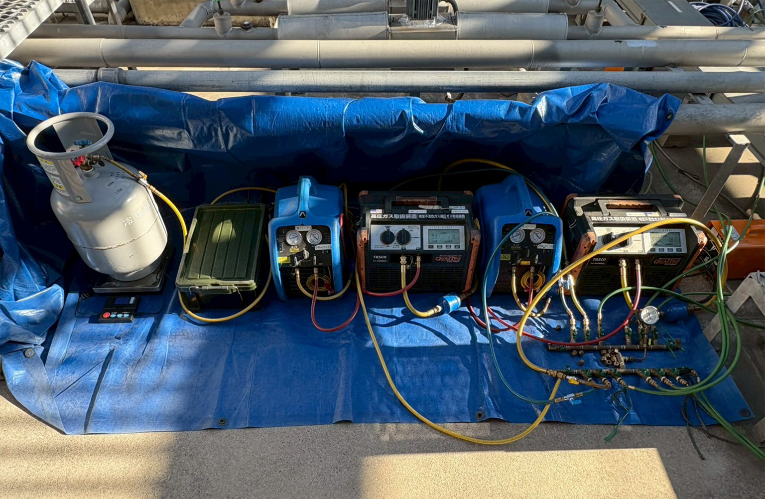 弊社では対象機器をまとめて回収することにより大幅な時間短縮をすることが可能です。また、弊社の回収基準は国が定めている基準よりも高く-0.04MPa以上の保持を徹底しておりますので確実な回収を行うことが可能です。